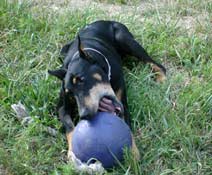 , upbeat, enthusiastic and loves to play with a Jolly Ball